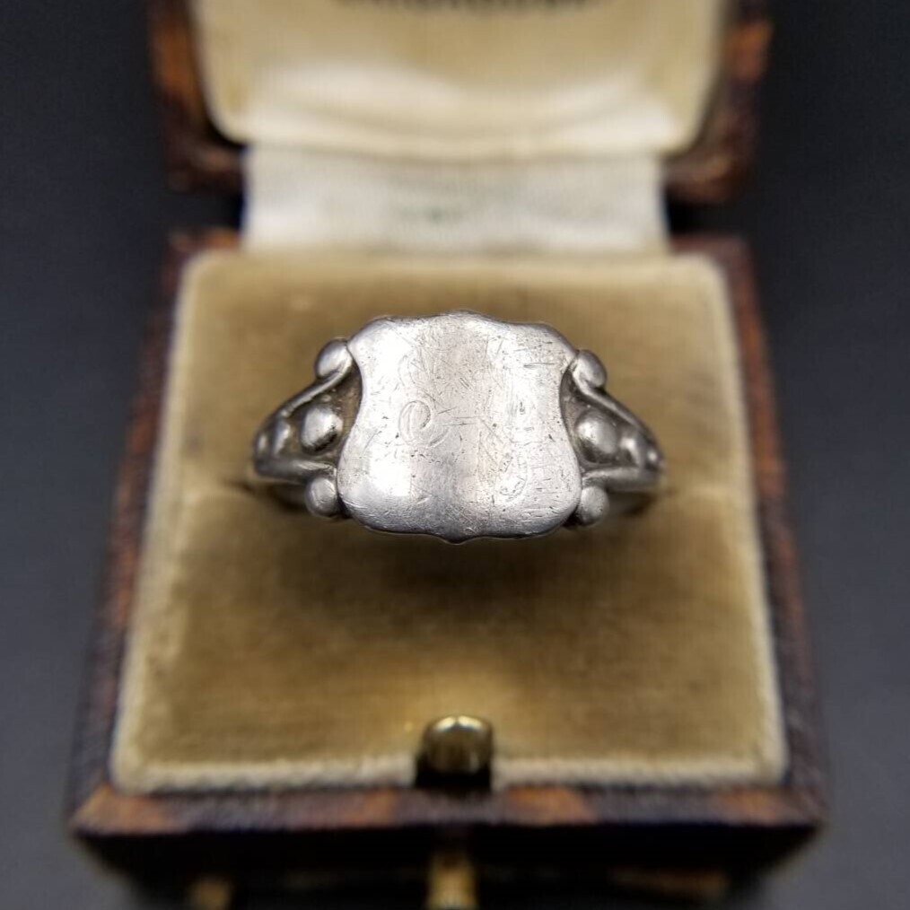 - ヴィクトリアン レトロ 925 シルバー ヴィンテージ シグネット リング 銀 指輪 クラシック イニシャルレター A メンズジュエリー Y24-M