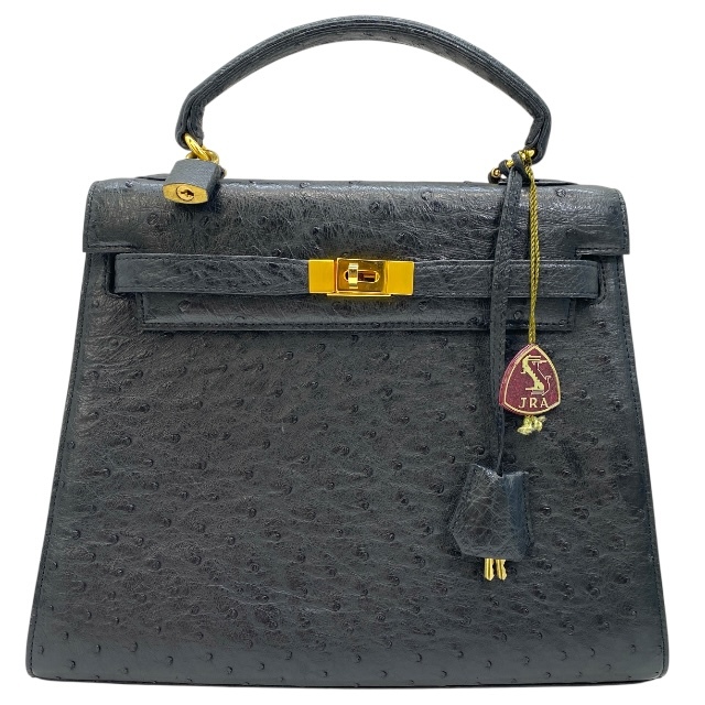 - JRA オーストリッチ ハンドバッグ ブラック ゴールド金具 レザー 南京錠 レディース