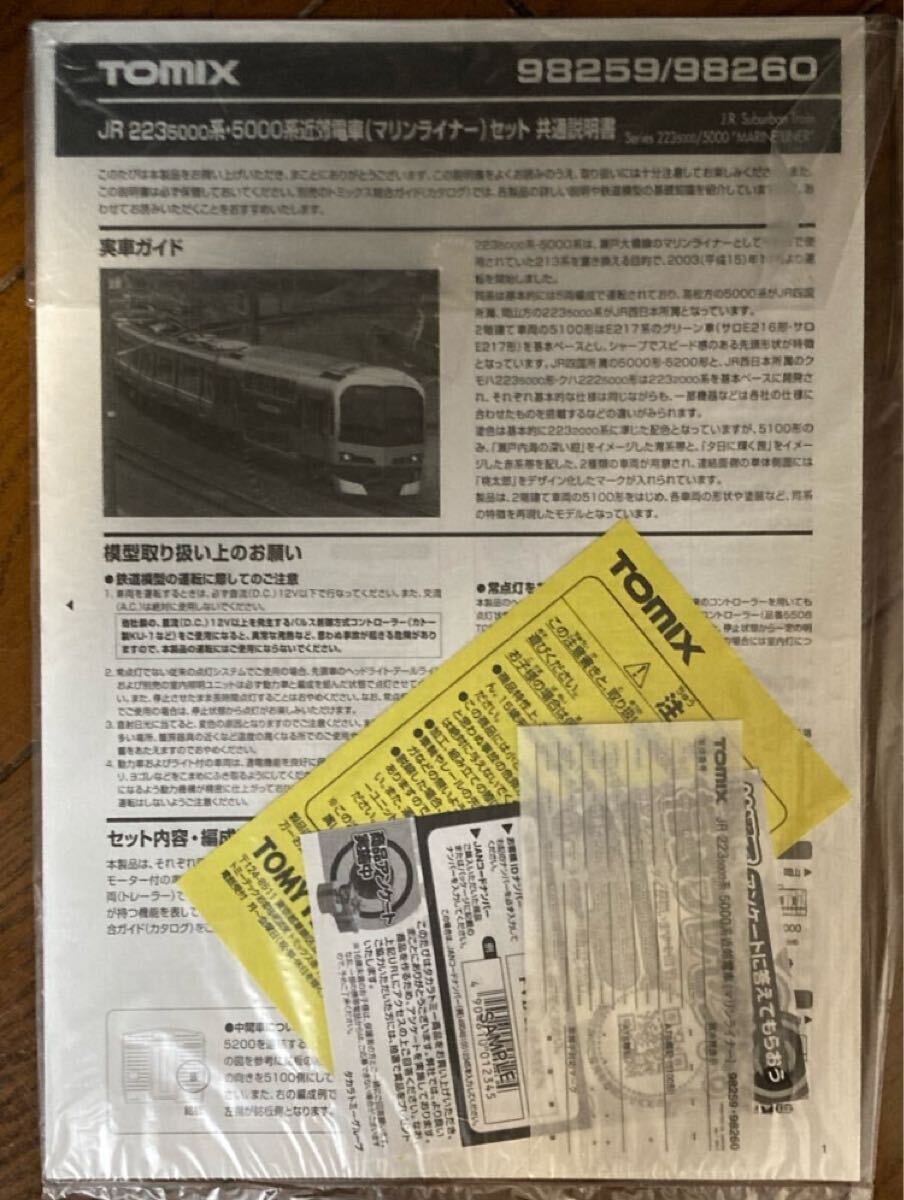 > TOMIX 98259/98260 JR 223-5000系・5000系近郊電車(マリンライナー)セットA 説明書 車番インレタ
