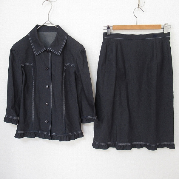 【ブランド】クレージュ courreges 【アイテム】スカートスーツ セットアップ 【表記サイズ】トップス:11AR ボトムス:67-93【平置き実寸】(トップス)肩幅:約 38cm袖丈:約 41cm身幅:約 46cm着丈:約 54cm(ボトムス)ウェスト:約 32cmスカート丈:約 63cm【状態】目立った傷汚れなし【備考】-【色】ネイビー系【素材】画像をご参照ください。★当店の商品はすべてリユースアイテムとなります。特質上、些細なダメージは記載しておりませんので着用に問題のない使用感、着古した雰囲気などはご了承くださいませ。キーワード/アクイール/古着/used/ビンテージ/ヴィンテージ/昭和/レトロ/イトキン/フリル/ジャケット/スカート