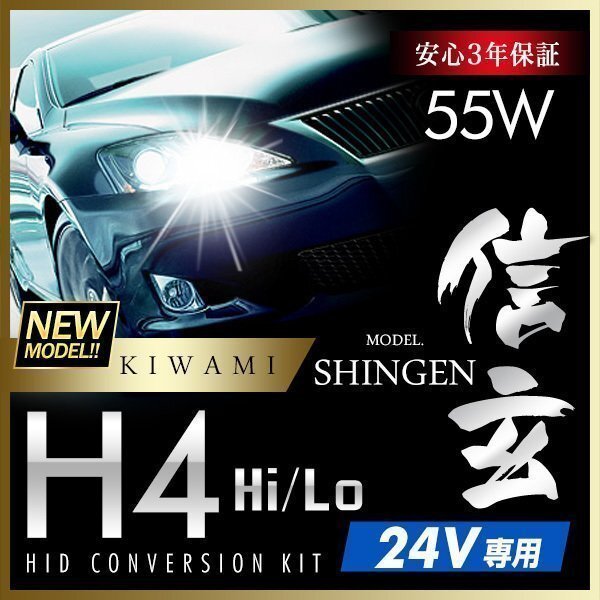 > 新品 ハイグレードバージョン HID Model 信玄 極 KIWAMI 55W H4 リレー付 24V専用モデル 安定性向上 安心のバラスト3年保証 バルブ1年保証