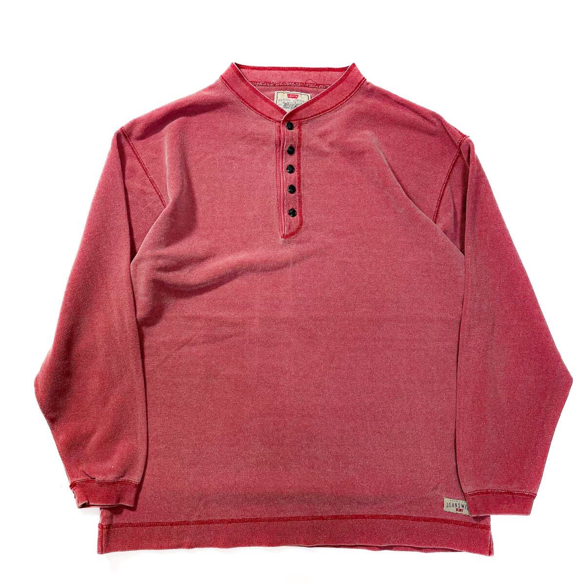 - 90s 80s Levi's リーバイス 鹿の子 ヘンリーネック カットソー コットン フェード レッド メタルボタン ビンテージ usa old L ロンt 501