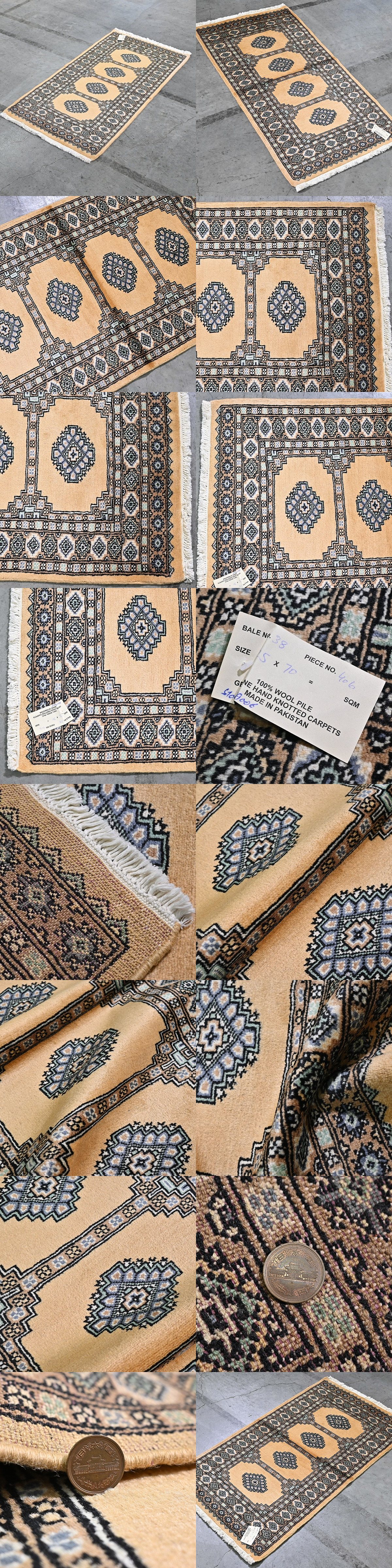 > 新品 未使用 パキスタン製 手織り ウール絨毯 ラグ ボハラ柄 ギュル文様 ハンドノット 羊毛 カーペット マット ホテル 応接室 P-122