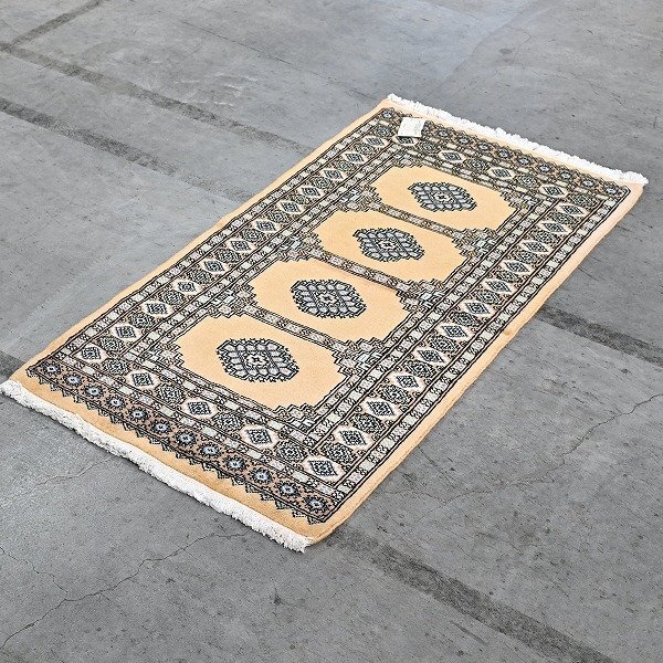 - 新品 未使用 パキスタン製 手織り ウール絨毯 ラグ ボハラ柄 ギュル文様 ハンドノット 羊毛 カーペット マット ホテル 応接室 P-122