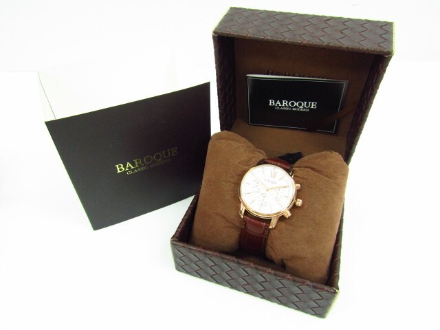 > 未使用 BAROQUE バロック BA1009RG-01BR クロノグラフ クォーツ腕時計 レザーベルト♪AC15863