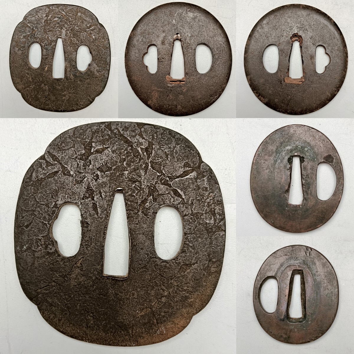> 【A4153】3点まとめ 鉄地 銅地 刀鍔 鐔 つば ツバ 刀装具 日本刀装具 刀剣美術 骨董品 アンティーク