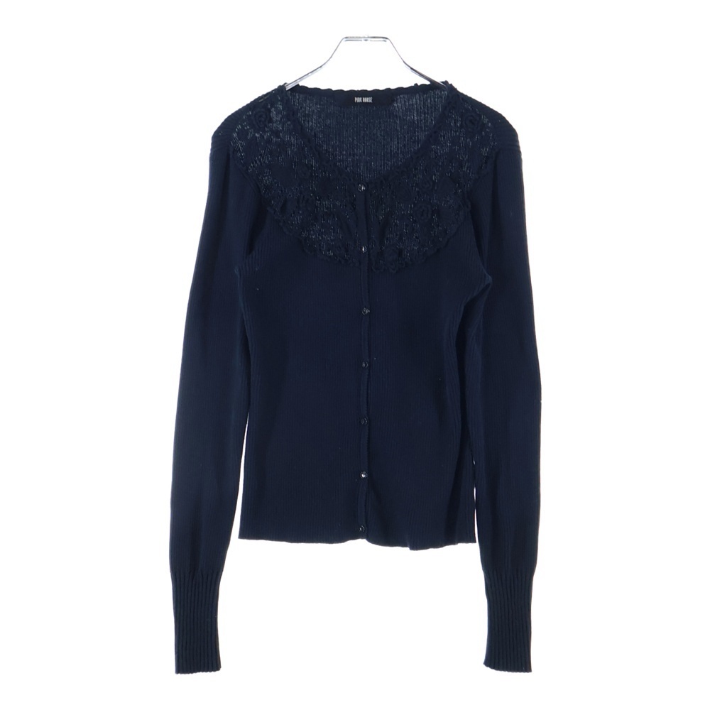 > NO BRAND ノーブランド PINK HOUSE (ピンクハウス) 花刺繍 ショート丈 ニットカーディガン レディース ネイビー P015EKAL04 B