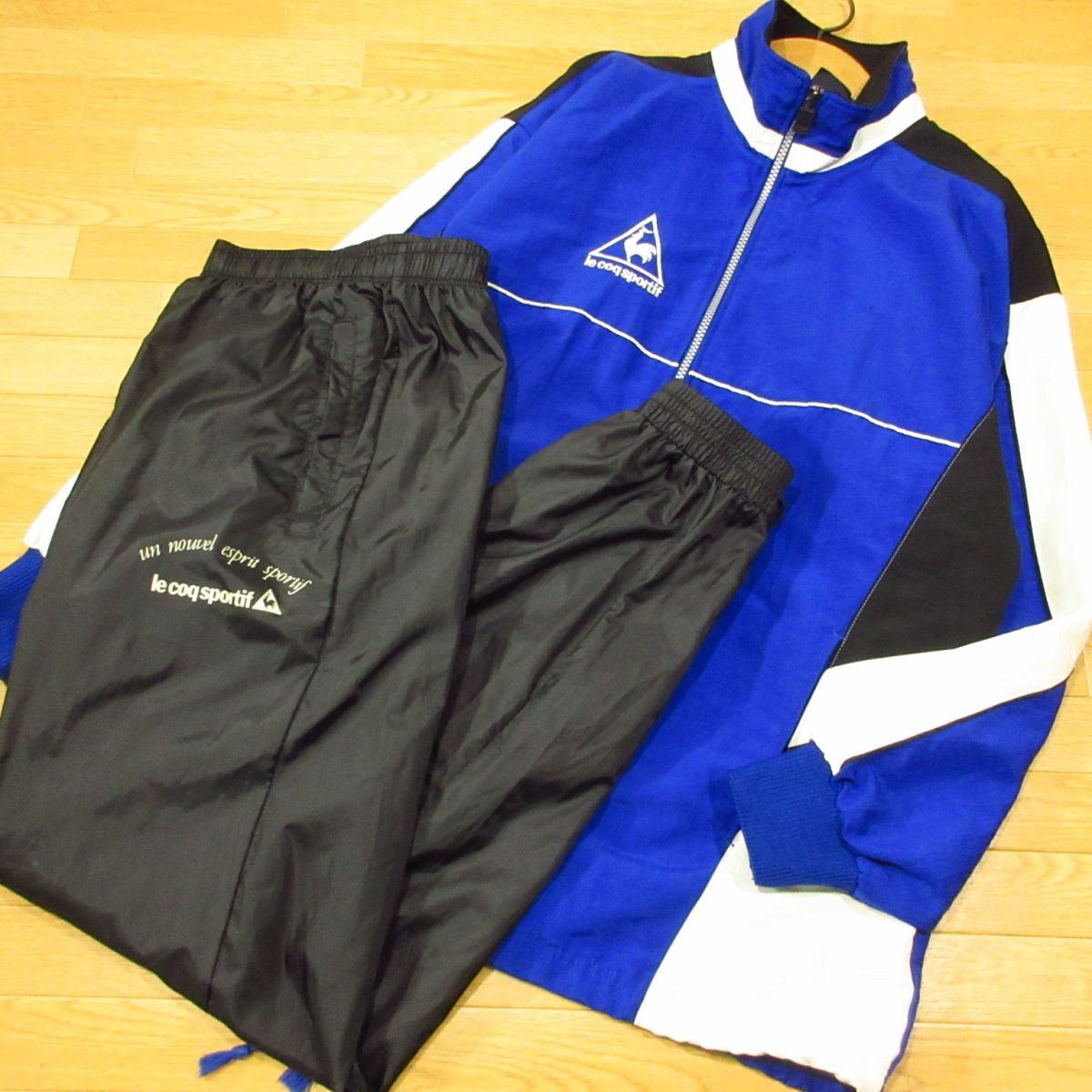 > ◎良品 90s!le coq sportif ルコック M 上下セット ウィンドブレーカー ジャケット&パンツ ヴィンテージ 90年代 メンズ 青x黒◆BA3756