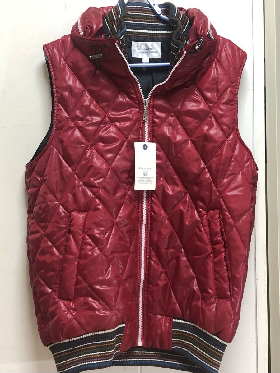 - 【未使用保管品S7050】GILEVANS ジルエバンス 中綿 ベスト フード 赤 ジップアップ メンズ Mサイズ
