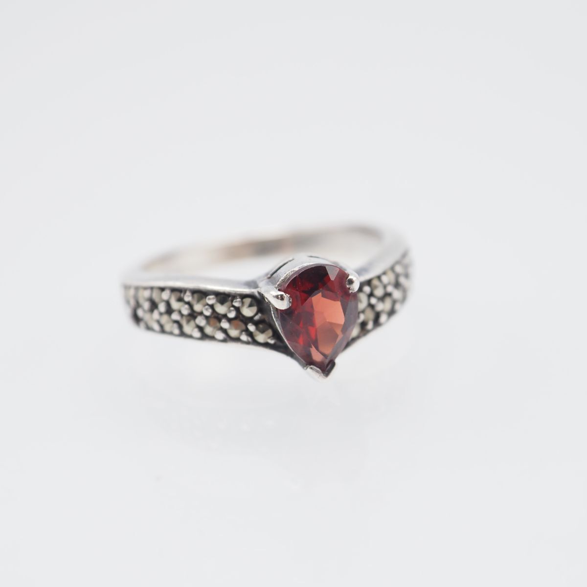 - G459 ガーネット マーカサイト マルカジット リング デザイン シルバー 指輪 ヴィンテージ 1月誕生石 10号