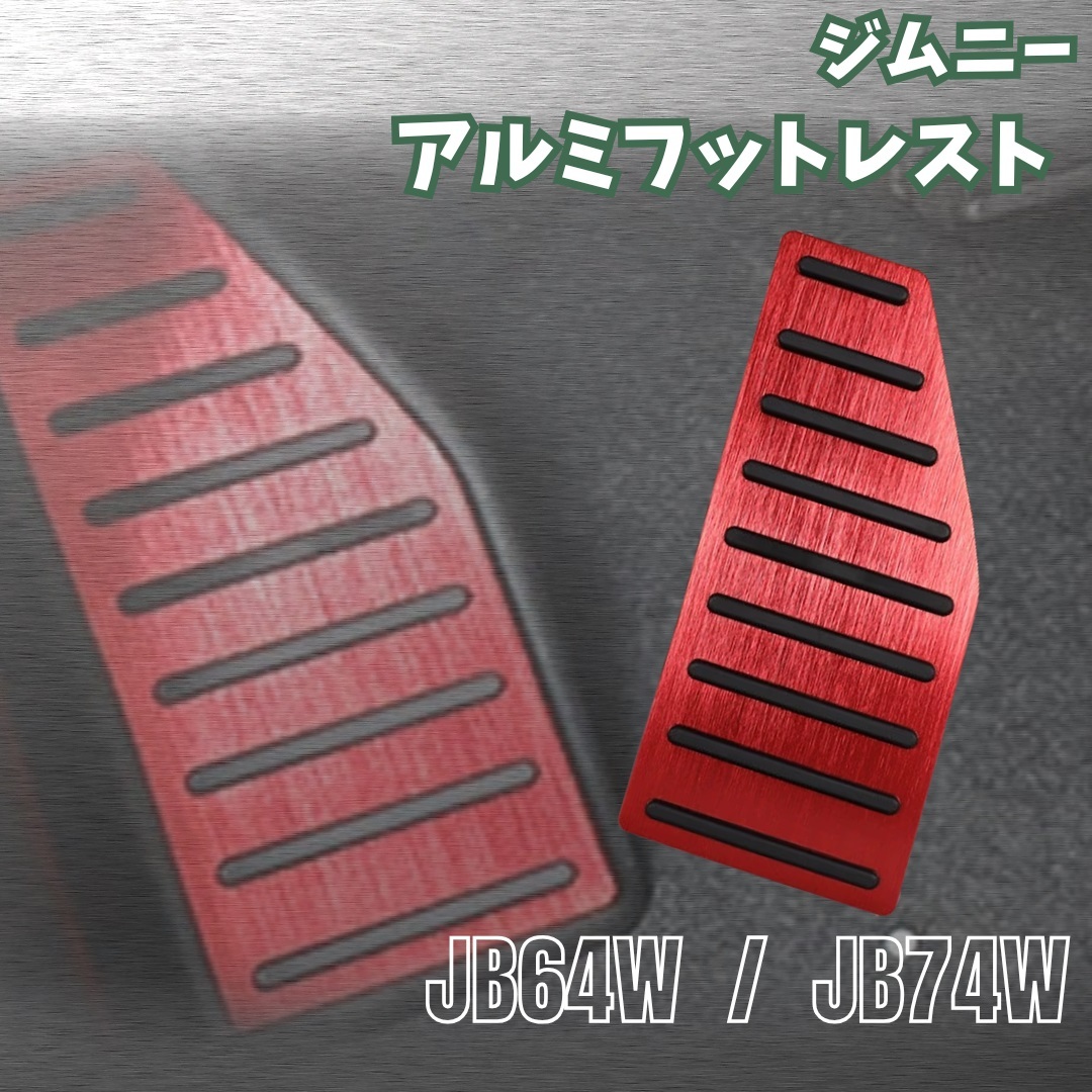 - 【スズキ ジムニー】ペダルカバー / アルミ レッド AT車 / SUZUKI ジムニーシエラ JB64W JB74W 対応 / フットレスト 滑り止め ラバー