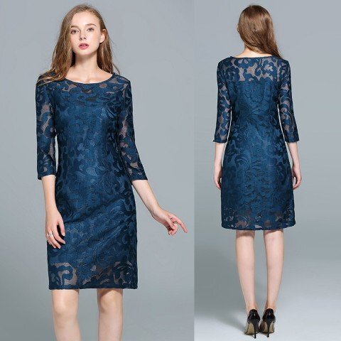- 大きいサイズ パーティー 結婚式 披露宴 ママ会 卒業式 七分袖 花柄総レースドレス ワンピース 3L ブルー