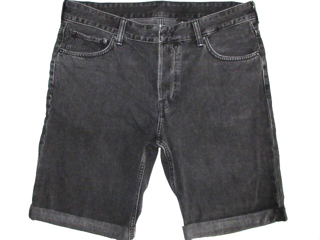 > ★古着 H&M &DENIM エイチアンドエム デニムショートパンツ W32 約W90cm ブラックデニム 黒 ウォッシュ加工 ハーフパンツ 裾ロールアップ★