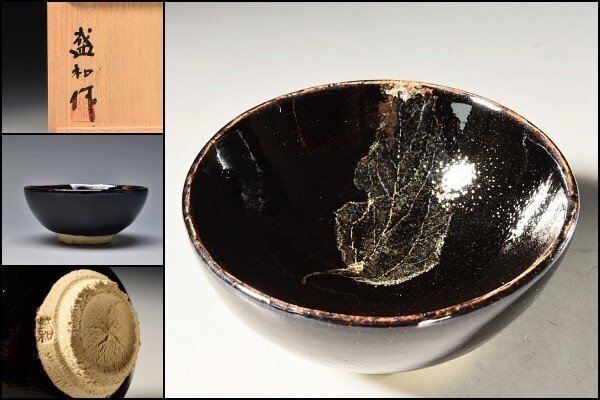> U08620 木村盛和 木ノ葉 天目 窯変 ぐい呑 盃 酒器 良作 共箱 /G201