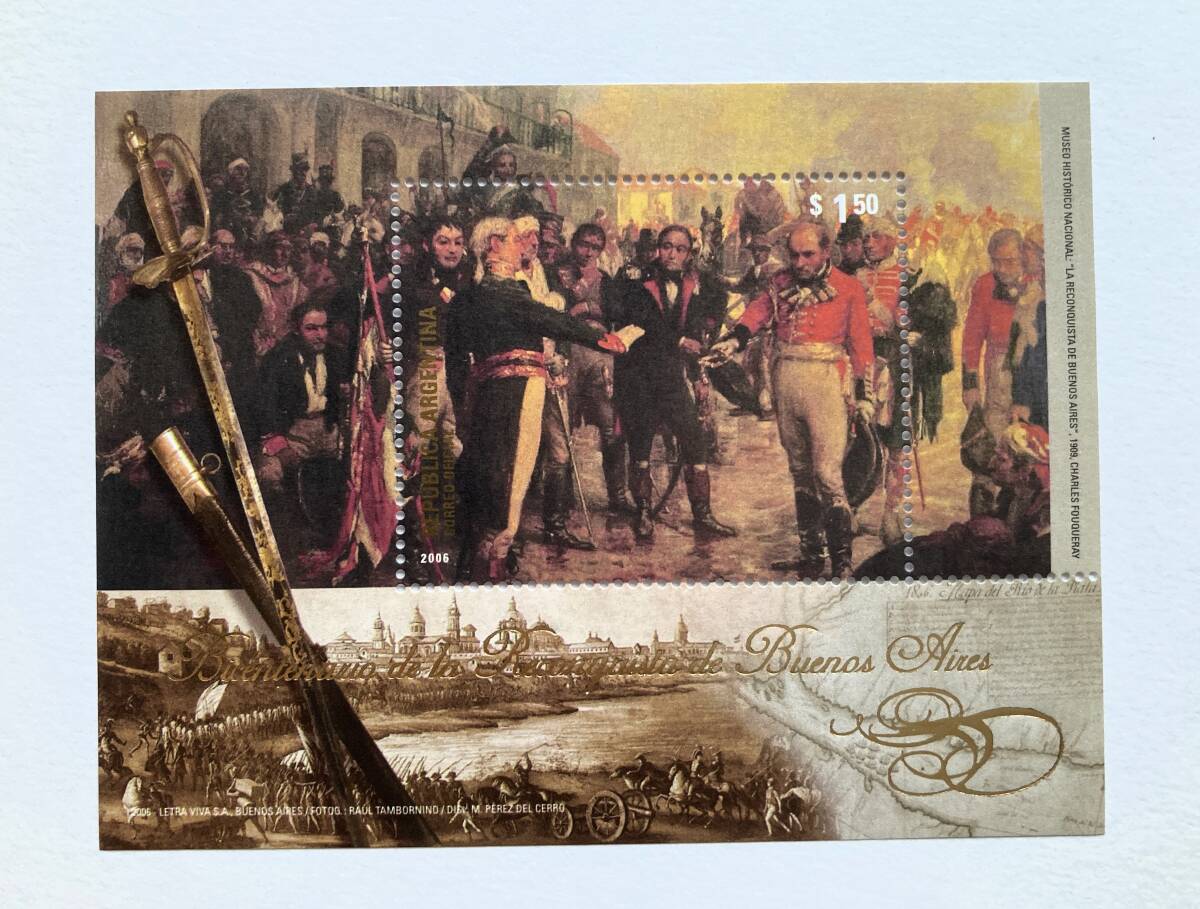 - 外国切手: アルゼンチン切手 「ブエノスアイレスの再征服200年」 小型シート 未使用