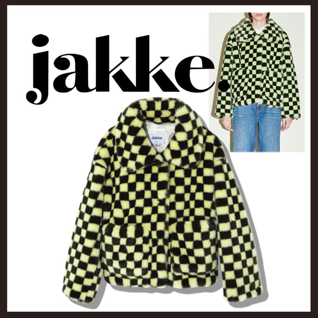 > ○★新品未使用 ジャッキー トレーシー フェイクファーショートコート グリーンS【jakke】エコファーコート ブロックチェック○●