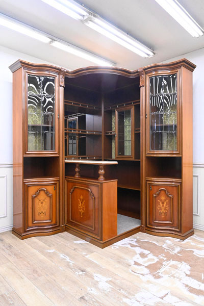 - KF19 購入260万円 イタリア製 クラシック 本象嵌 ステンドグラス バーカウンター リビングボード 食器棚 コーナーボード キュリオケース