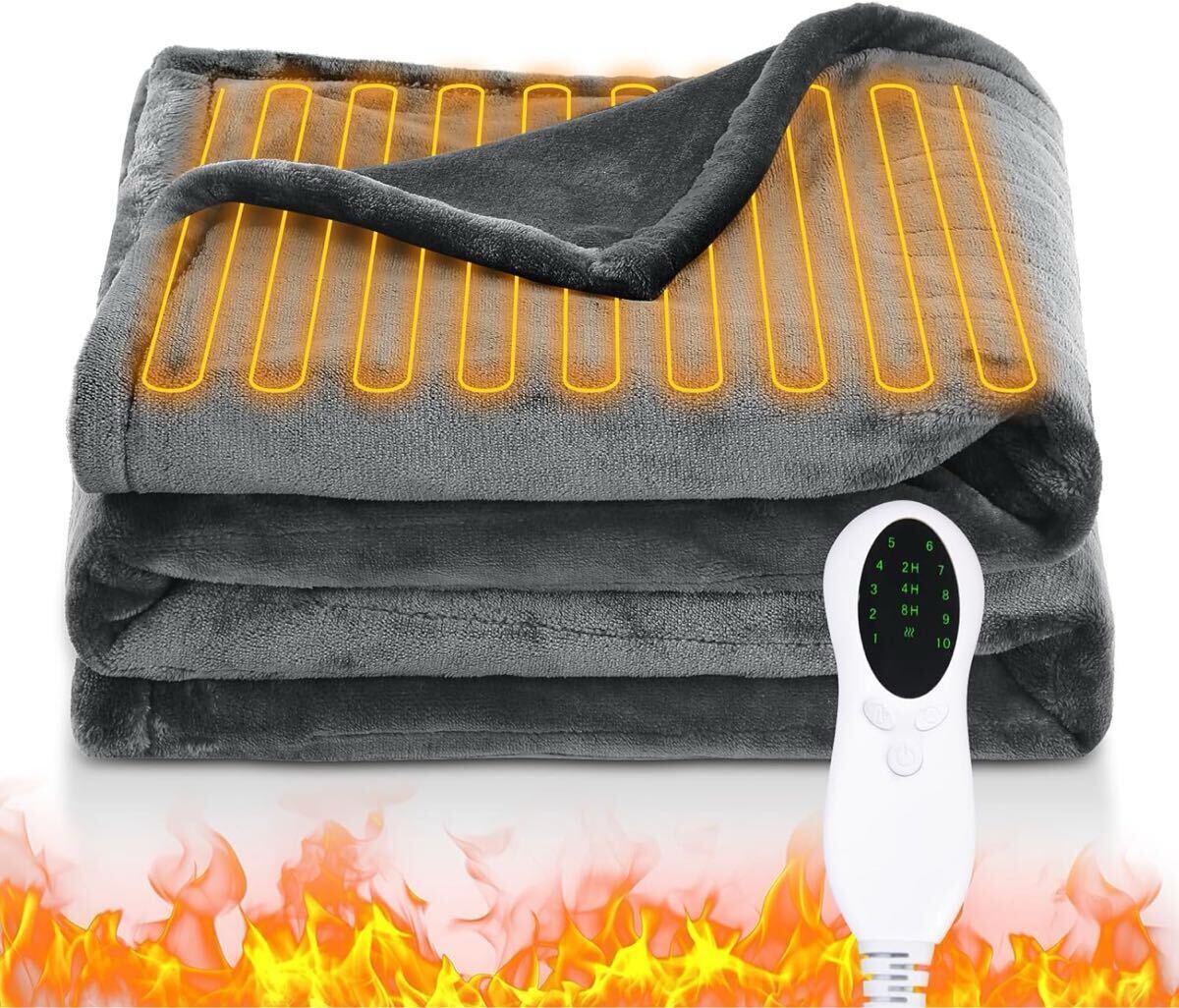 - 早い物勝ち電気毛布 3分速暖 10段階温度調節 2/4/8Hタイマー設定 敷き 掛け 電気膝掛け 掛敷兼用毛布 毛玉なし 高性能コントローラー