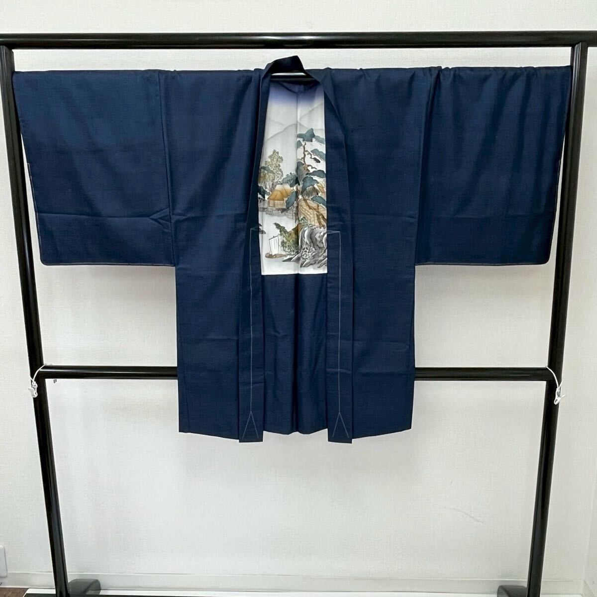 - 男性着物 羽織 本場大島紬 泥藍染 亀甲絣 100亀甲 裄72.5 正絹 着物 W-4767