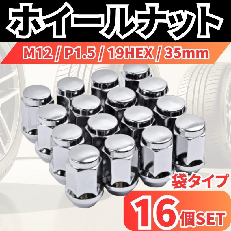 > ホイールナット 袋ナット スチールナット M12 P1.5 35mm 19HEX 16個 セット トヨタ マツダ ホンダ ダイハツ ミツビシ