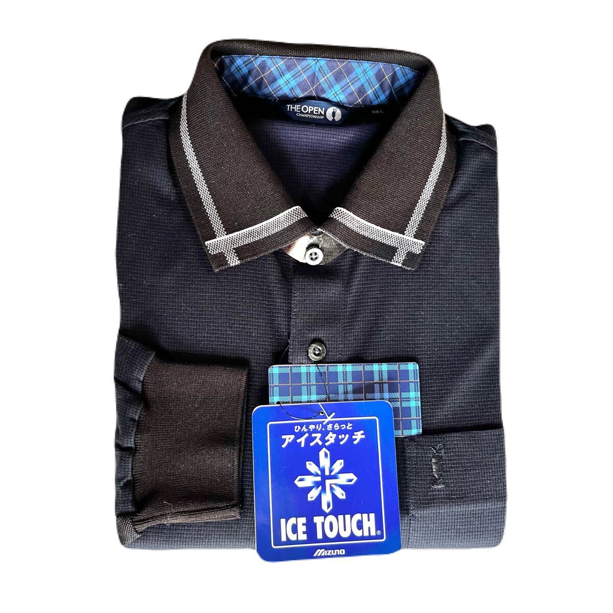 - 未使用 THE OPEN CHANPIONSHIP ポロシャツ 長袖 アイスタッチ 冷感 カジュアル メンズ ブラック 黒 紳士服 L