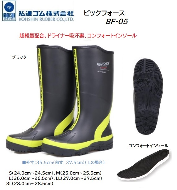 - ビックイナバ特価品!弘進ゴム 紳士長靴 ビックフォースBF-05 【ブラック・3L・28-28.5cm】超軽量・吸汗裏の品が、即決1980円
