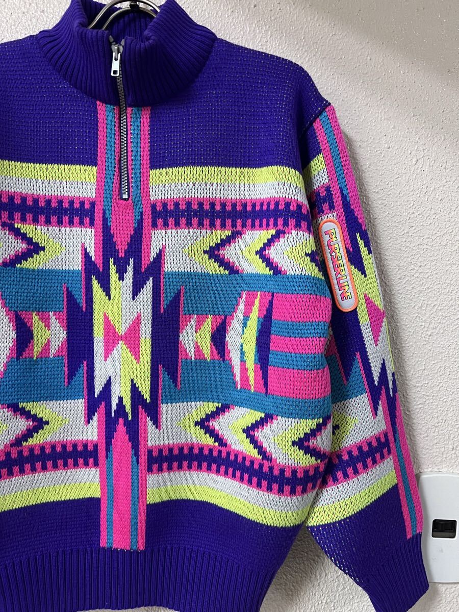 - 日本製 PURSER オルテガ 柄 ハーフジップ ニットセーター L