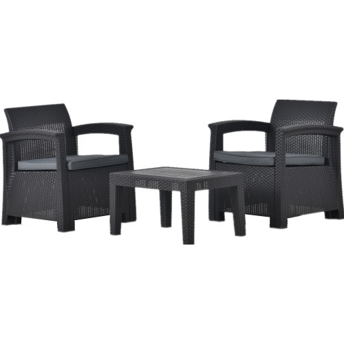 - ラタン調 ガーデンファニチャー 3点 ガーデンテーブル ガーデンチェアー ラタン調 テーブル 家具 樹脂 ホテル カフェ 屋外家具【グ KU102
