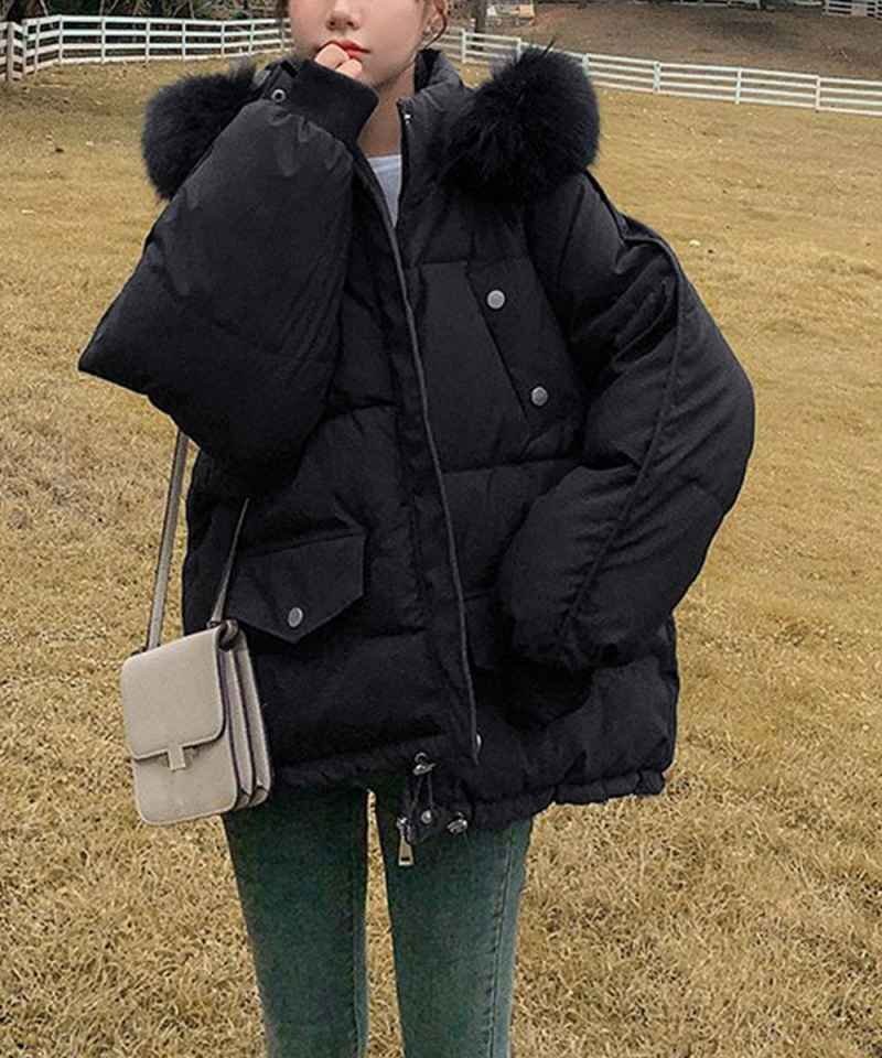 - ダウンコート フードエコダウンジャケット フェイクダウン 中綿ブルゾン フードファー フェイクファー 秋冬 XL アイボリー