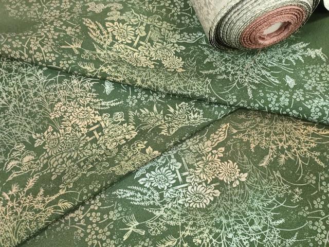 - 平和屋着物▼小紋 反物 着尺 八掛付き 舞蝶草花文 浜ちりめん 逸品 未使用 DAAW7360zzz
