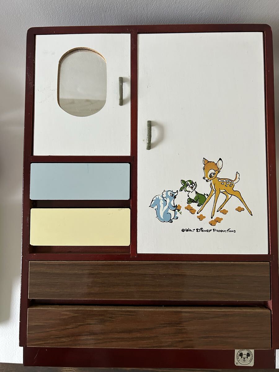 - 希少!木製 昭和レトロ ディズニーワールド ミニチュアタンス チェストバンビ 当時物 証紙シール付き 検索 宇山あゆみ 内藤ルネ