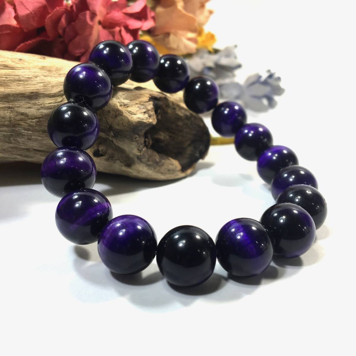 - パープルタイガーアイ パワーストーン ブレスレット 12mm シンプル 開運 浄化 数珠ブレス メンズ 男性
