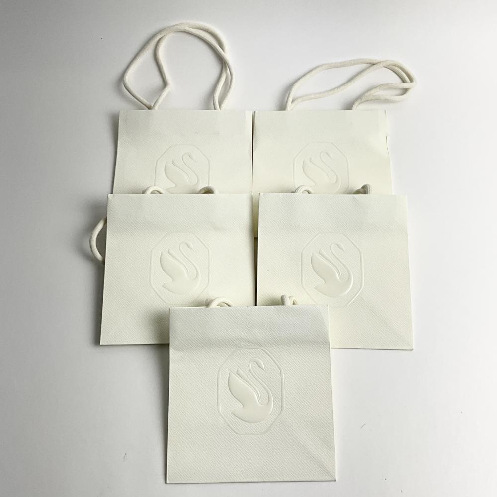SWAROVSKI スワロフスキー 紙袋 5枚セット ショップ袋 ショッパー まとめ売り 処分 長期保管品こちらの商品はスワロフスキーの紙袋、5枚セットになります。未使用品でございますが、長期保管品となりますので、ご注意くださいますようお願い申し上げます。(多少のシワなどはご了承いただけますようお願い致します)状態につきましては、画像をご参考程度ご確認いただけますようお願いいたします。サイズ:約17.5cm(横)×18cm×(縦)×11cm(マチ)※メジャーで測っております為、多少の誤差はご了承くださいますようお願い申し上げます。※ゆうパケット(メール便)にて発送予定■保証 なし