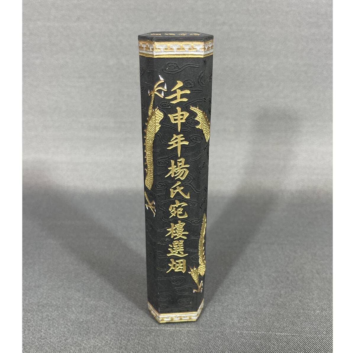 - 【風車】 国営徽州胡開文墨厂製 廷珪遺法 壬申年楊氏宛楼選煙 古墨▲超頂漆煙 龍図 金彩▲文房具 中国墨
