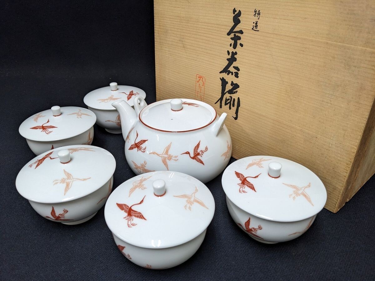 本体サイズ・(急須)幅約17cm 高さ約10cm 奥行約13.5cm (湯呑)幅約10cm 高さ約7.5cm