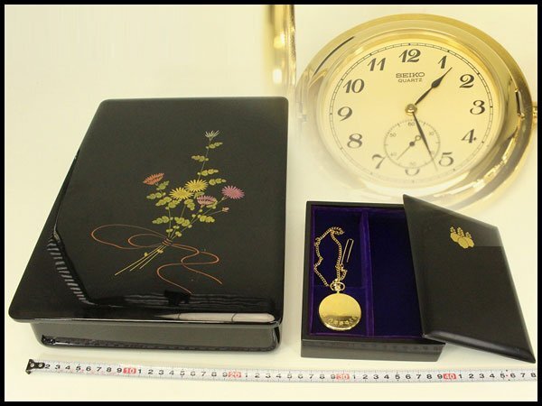 - 【銀閣】内閣総理大臣贈 会津蒔絵箱 大小 懐中時計 まとめて 旧家蔵出 送料無料(A851)