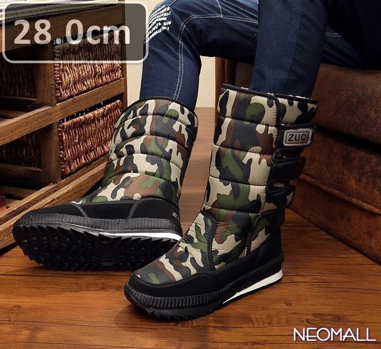 > メンズ スノーシューズ 【866】 28.0cm グリーン迷彩 ムートンブーツ スニーカー ウィンターブーツ 裏起毛 防水 防寒 防滑 冬用靴 綿靴
