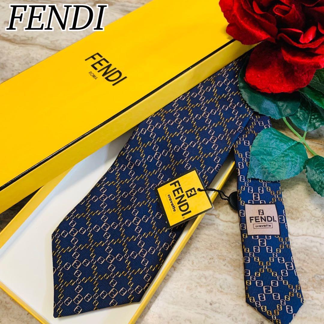 - N178 新品未使用 タグ付き フェンディ ズッカ柄 ネイビー ネクタイ メンズ