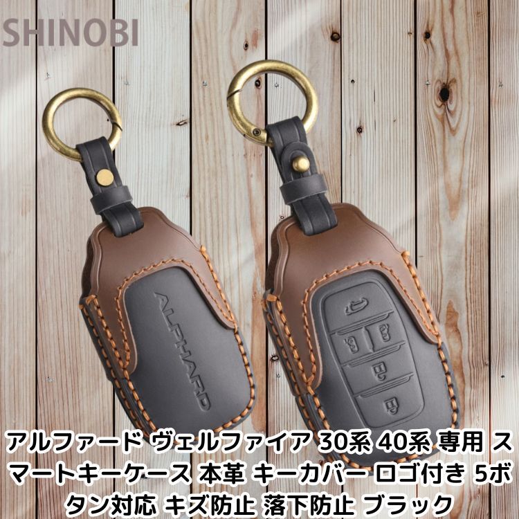 - アルファード ヴェルファイア 30系 40系 専用 スマートキーケース 本革 キーカバー ロゴ付き 5ボタン対応 キズ防止 落下防止 ブラック