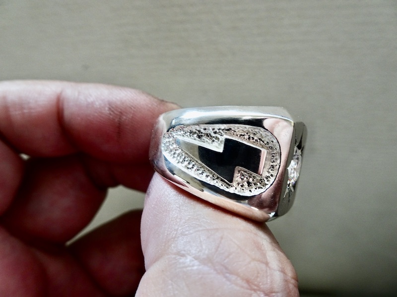 - 仁尾彫金『一つ星ジルコニア、プラチナ、サンダー印台リング』ハンドメイド191
