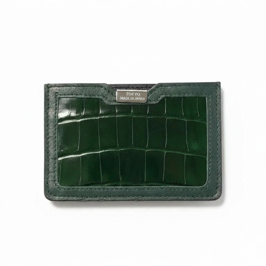 - 送料込み★現品お届け[Laquju]ラクジュ クロコダイル×牛革 カードケース カード入れ 名刺入れ (グリーン)