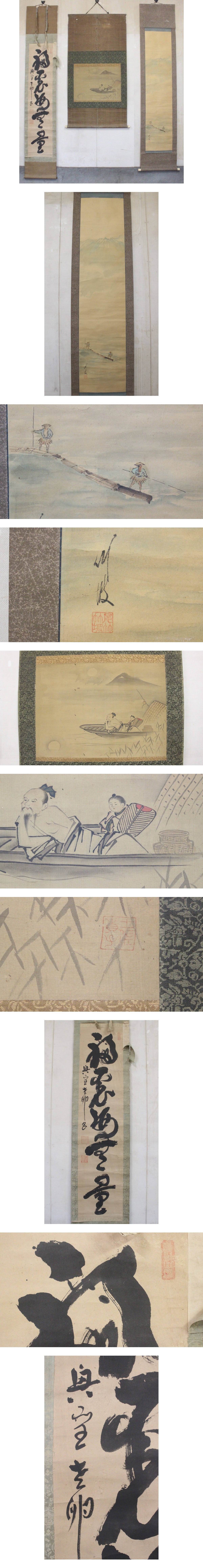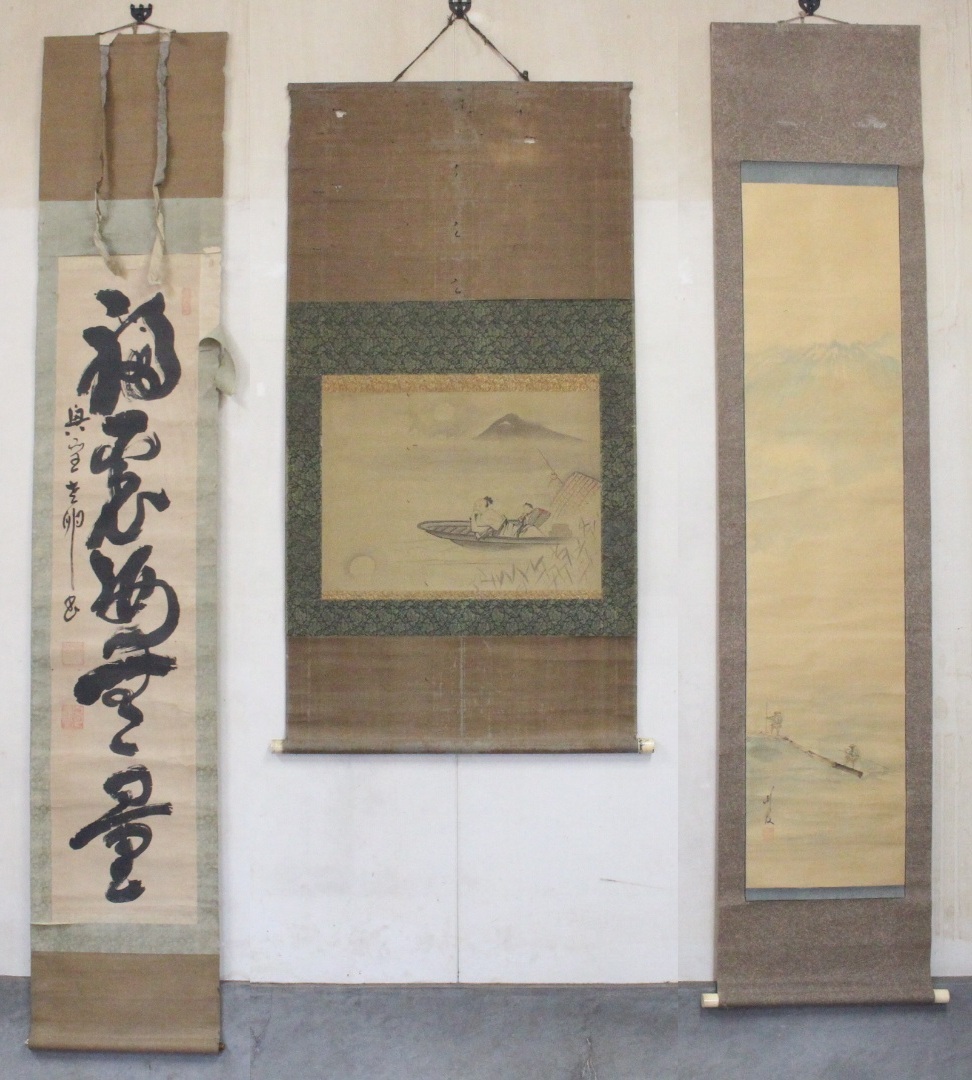 - 【模写】書画 掛軸 3点セット 紙本絹本肉筆 絵画美術骨董 チ89
