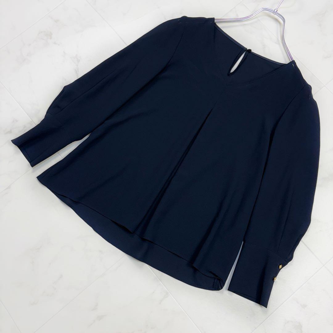 - アナイ ゴールドカフス ジョーゼットブラウス 36 ネイビー 金ボタン 長袖