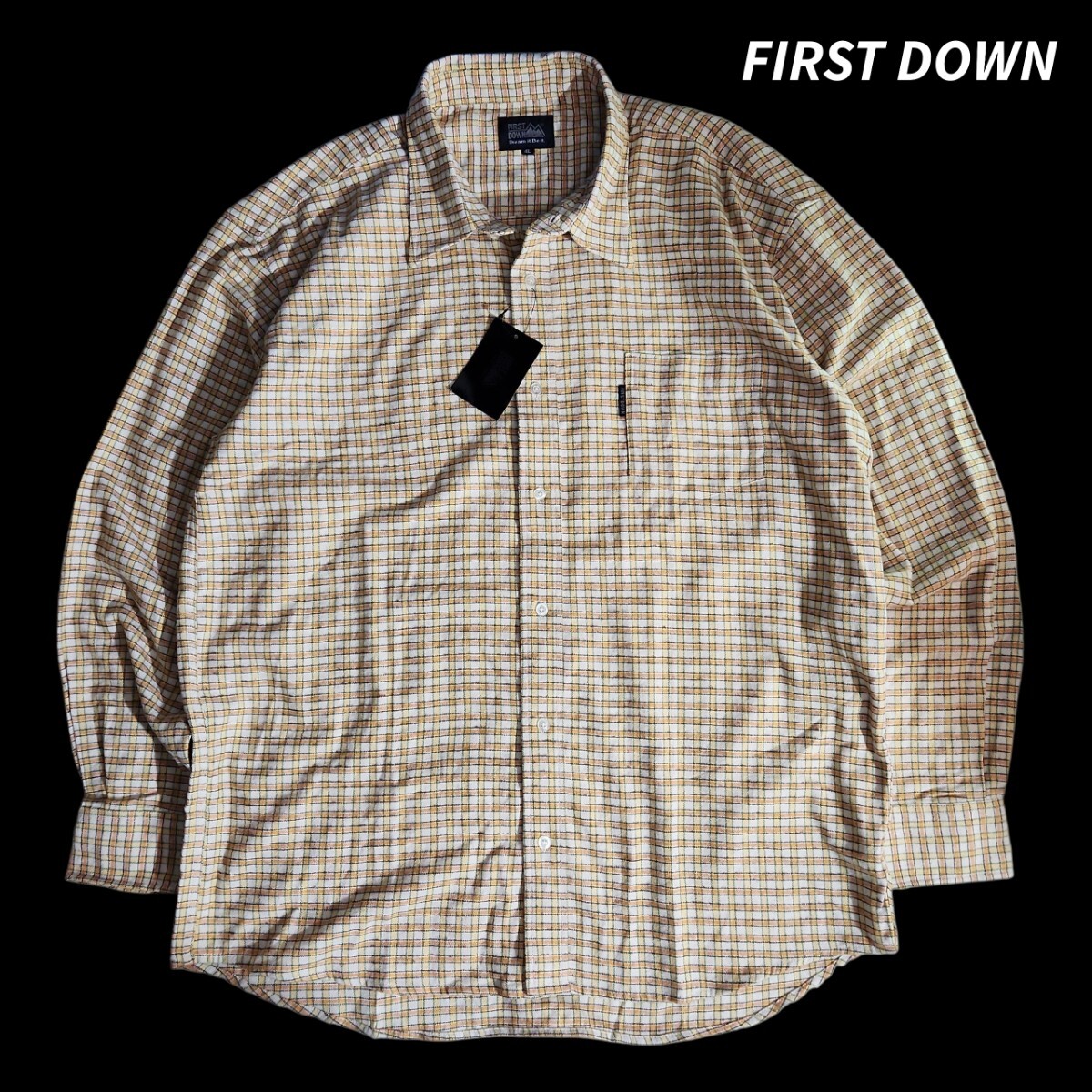 > FIRST DOWN チェック柄 ネルシャツ 表記サイズ4L 大きいサイズ オレンジ黄色オフホワイト緑 84941