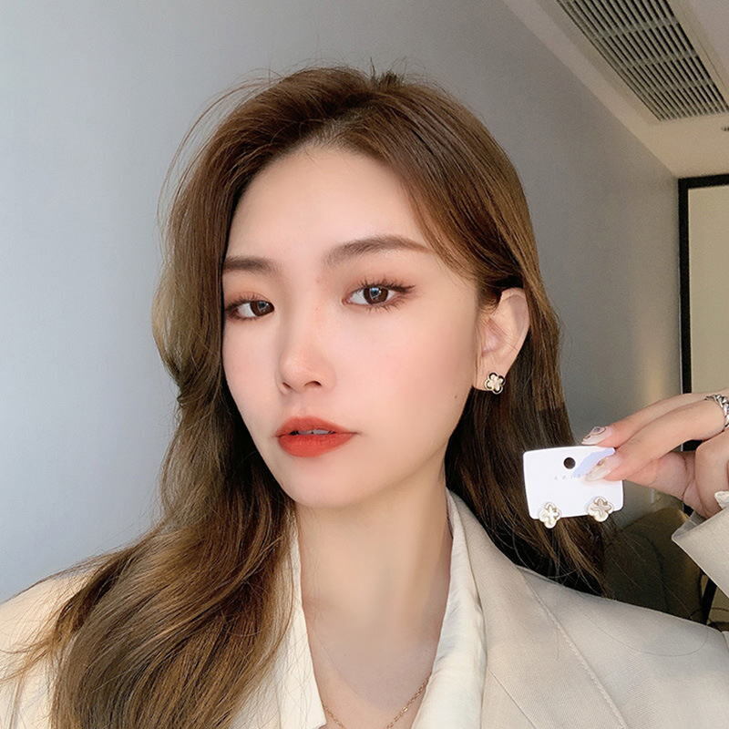 - セラミック色★ハイブラ採用クローバー型ゴールドピアス★一点投入でまとまりすぎ回避