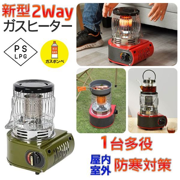 > ★送料無料・30日間保証付き★カセットガスストーブ ガスヒーター グリーン 1台多役 電源不要 停電対策-防寒対策 暖房機 釣り キャンプ用