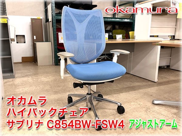 > オカムラ ハイバックチェア サブリナ C854BW-FSW4 アクアブルー×ホワイト アジャストアーム 5本脚 シンクロリクライニング 【長野発】