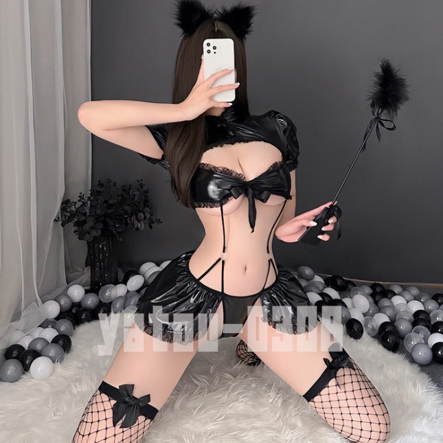 - H399 コスプレウェア フェイクレザー トップス+ショーツ レオタード レースクイーン セクシーランジェリー ナイトウェア