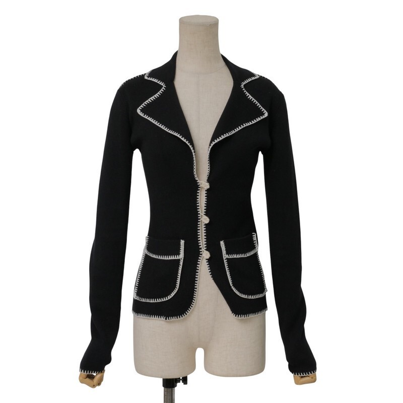 - GS3698〇エンポリオ アルマーニ EMPORIO ARMANI*ニットジャケット*カーディガン*コットン100%*サイズ38*ブラック×ホワイト