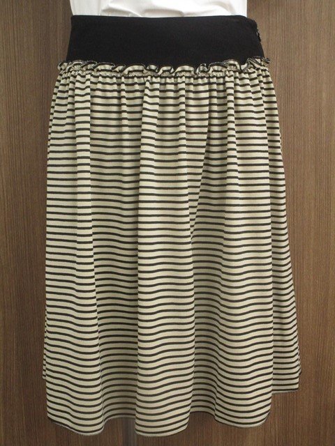 > 新品タグ付 アナトリエ anatelier ひざ丈 フレアスカート 38 ベージュ×ブラック ボーダー柄 【メール便可】